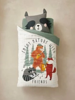 Parure Housse De Couette + Taie D’oreiller Enfant NORTH FOLK Oeko-Tex® Blanc Imprimé – Vertbaudet