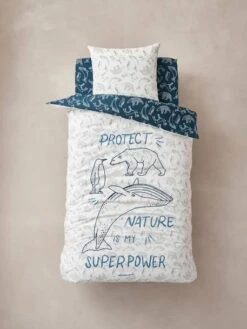 Parure Housse De Couette + Taie D’oreiller Enfant En Coton Bio* NATURE SAUVAGE Bleu – Vertbaudet